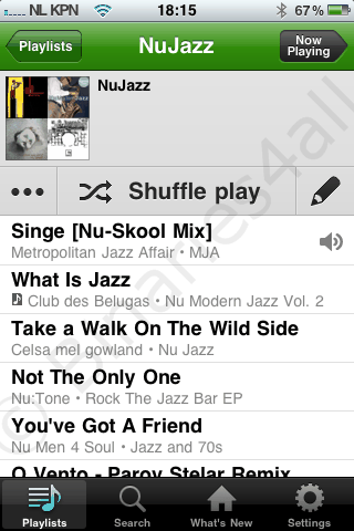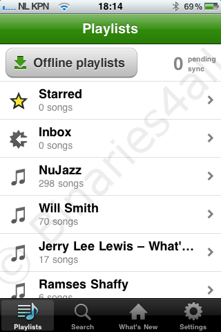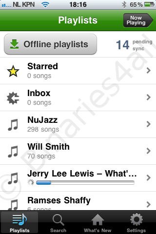 Net als op de computer wordt de muziek gestreamd. Waar dit voor een computer geen probleem is, is dat wel het geval op een mobiele telefoon. Niet alleen is het maar de vraag of er wel een internetverbinding aanwezig is die snel genoeg is, ook kan het zo zijn dat je extra kosten krijgt voor het gebruik van (overmatig) dataverkeer. Daarnaast gaat de accu razendsnel leeg. Om die reden kan je, net als op de computer, een playlist offline opslaan, dus lokaal op de telefoon zelf.