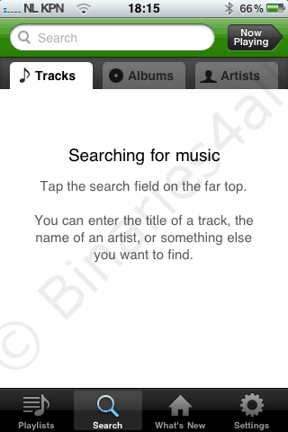 Op het tabblad 'Search' kan je naar muziek zoeken: