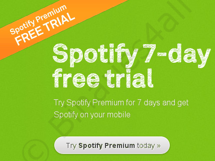 Ten tijde van het schrijven van deze handleiding was het mogelijk om gratis zeven dagen van Spotify premium gebruik te maken. De website toonde: